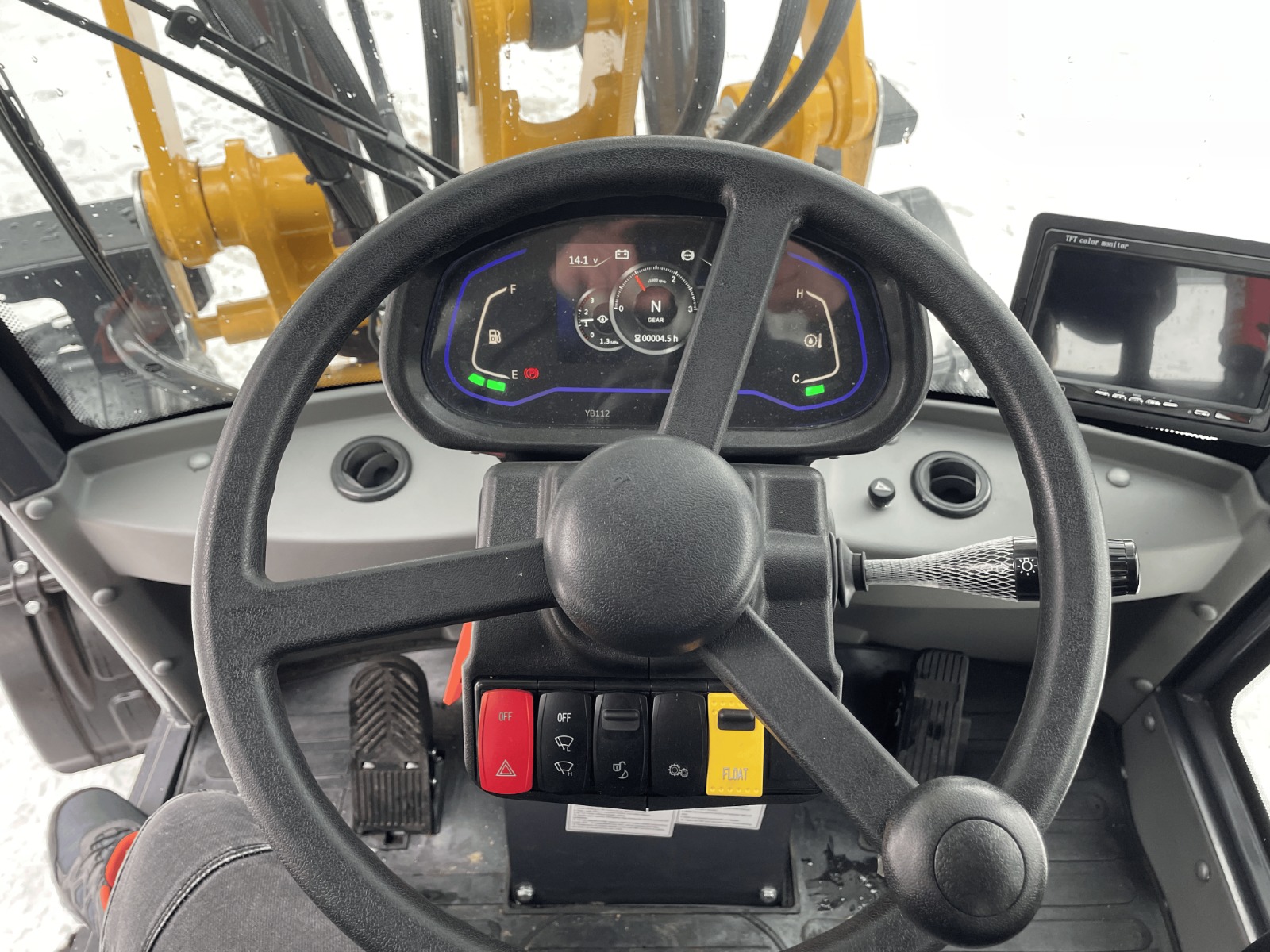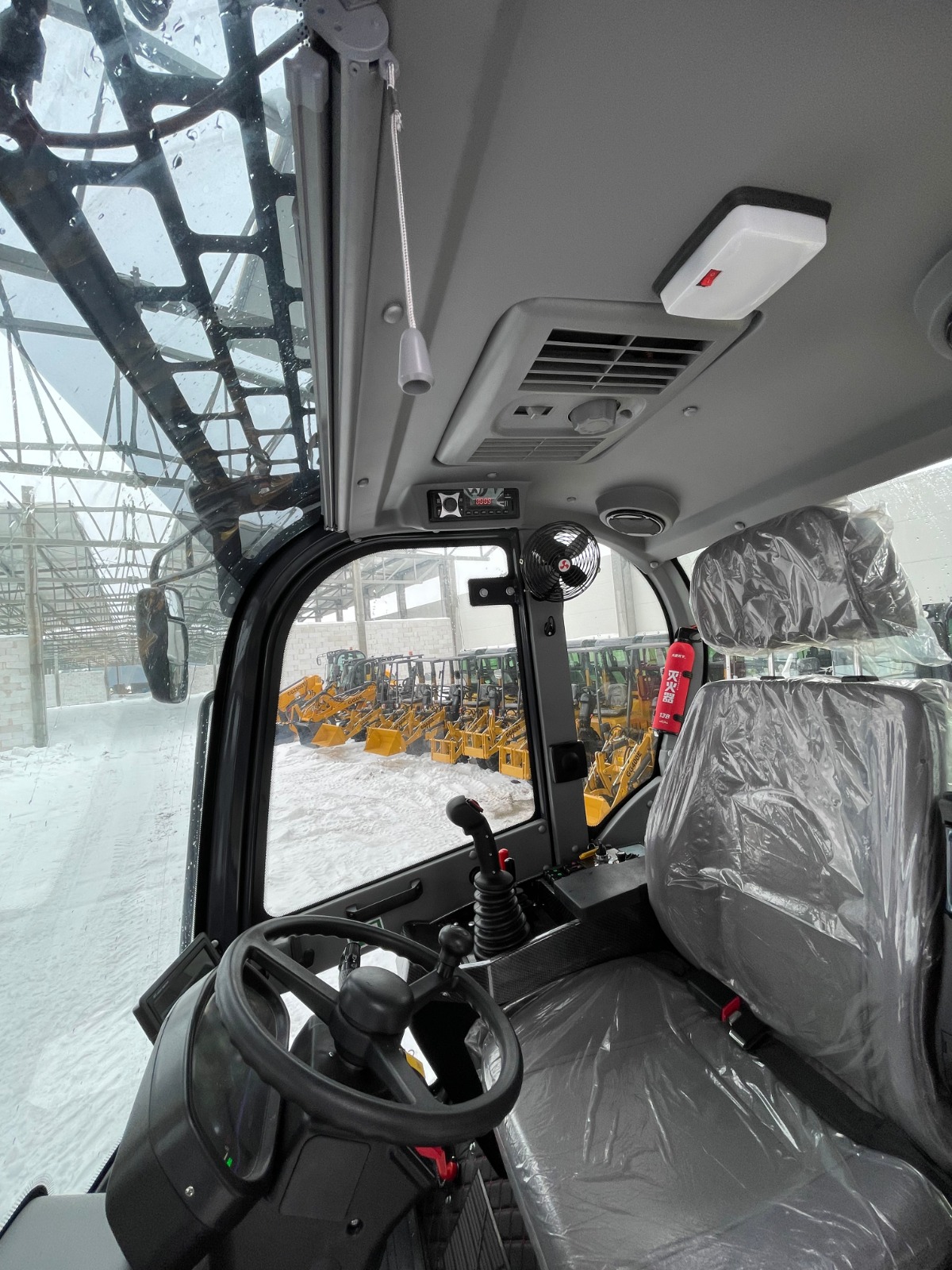 Die Gesamtlänge der Maschine beträgt 5150 mm, die Breite 1900 mm und die Höhe 2600 mm. Eine minimale Bodenfreiheit von 262 mm ermöglicht den Einsatz auf unebenem Gelände. Serienmäßige Reifen der Größe 20.5/70-16 bieten gute Traktion, während optionale Reifen der Größe 33X16,5-15 eine Anpassung an spezifische Einsatzbedingungen erlauben.
