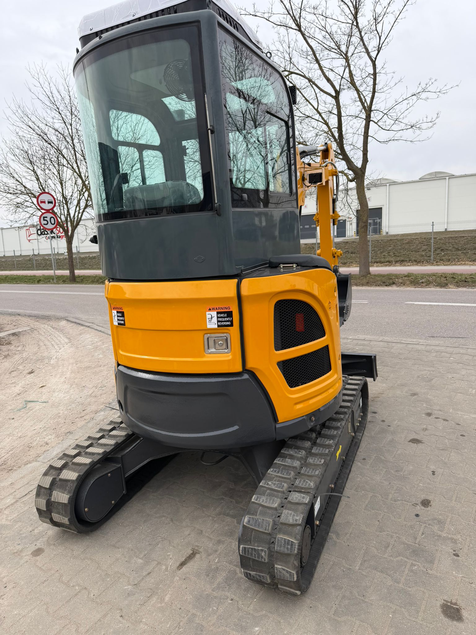 Die Gesamtlänge des Baggers beträgt 3950 mm, die Gesamtbreite 1400 mm und die Gesamthöhe 2300 mm. Die Plattformbreite von 1330 mm sowie die Plattformhöhe über dem Boden von 480 mm gewährleisten eine stabile Konstruktion. Der minimale Dreh- bzw. Wenderadius von 790 mm ermöglicht komfortables Arbeiten in engen Bereichen, während die Bodenfreiheit von 250 mm ein sicheres Fahren auf unebenem Gelände erlaubt.