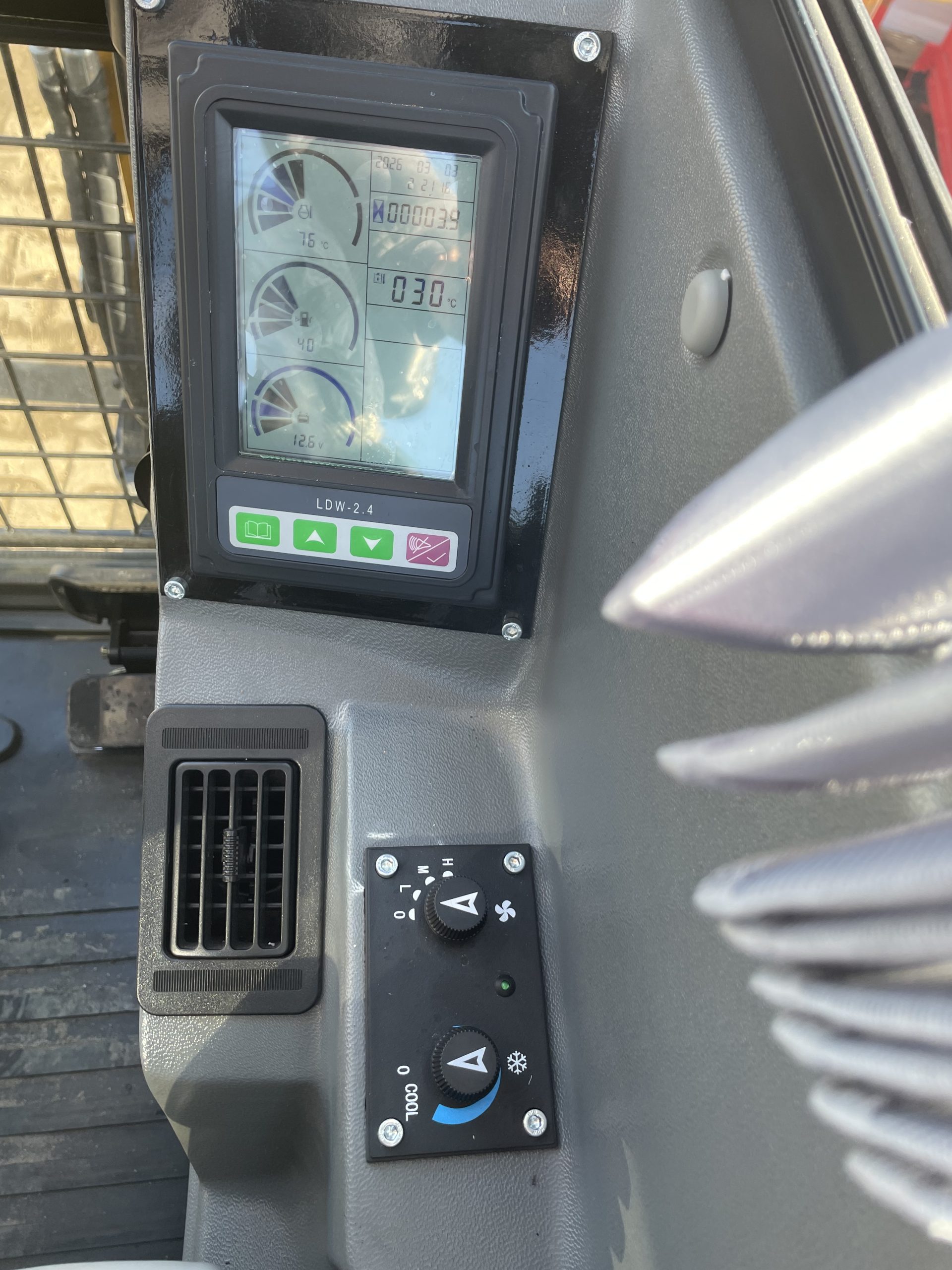 Der schwenkbare Ausleger ermöglicht eine Auslenkung von 55° nach links und 65° nach rechts und erhöht so die Flexibilität bei linearen Aushubarbeiten und beim Arbeiten in der Nähe von Hindernissen. Der Bedienkomfort wird durch eine geräumige Kabine mit Klimaanlage sowie ergonomische Steuerjoysticks erhöht, die eine komfortable und präzise Bedienung gewährleisten.